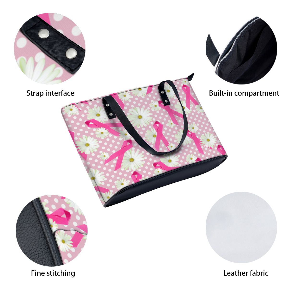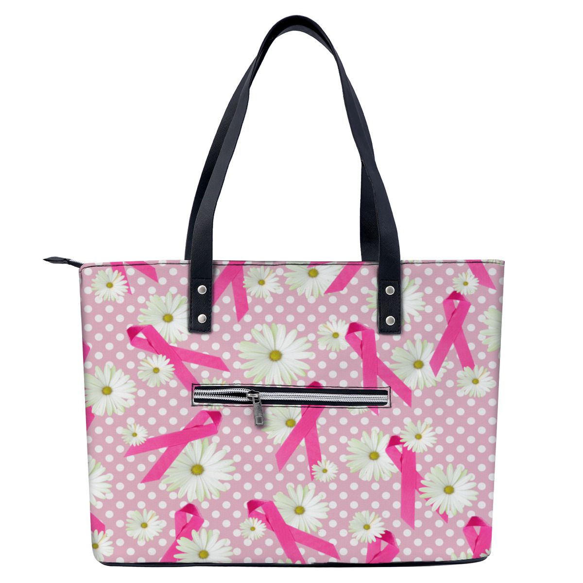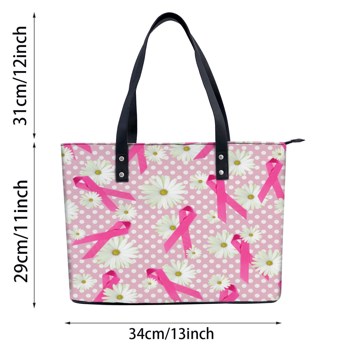 Pink ribbon breast cancer awareness on polka dot Shoulder Bag No.IOABL5