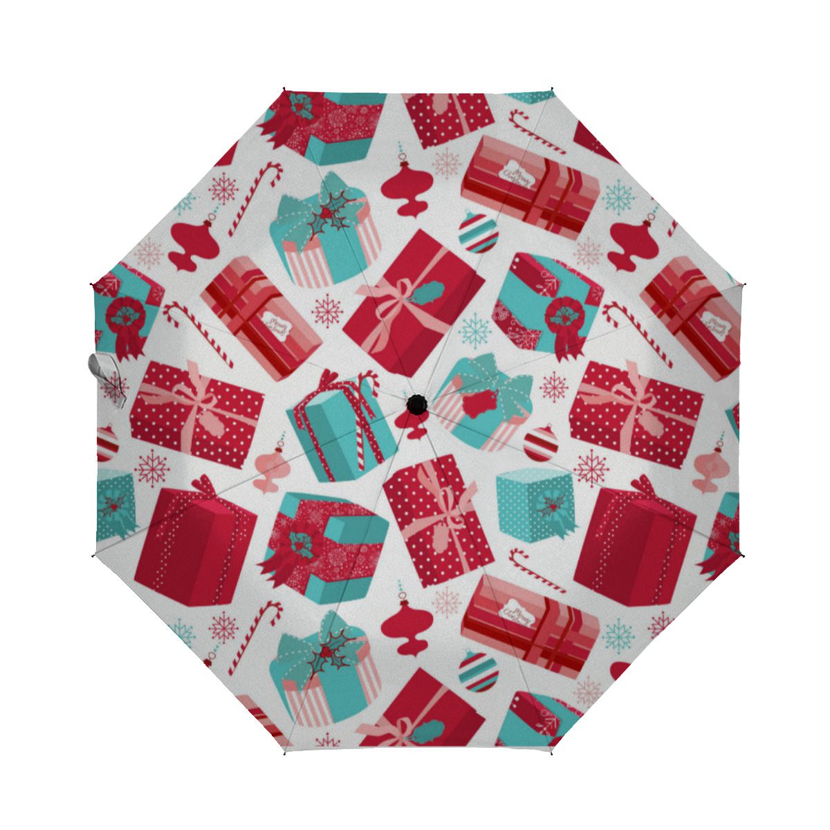 Red & Blue Retro Christmas Packages Brushed Polyester Umbrella No.O3KX78
