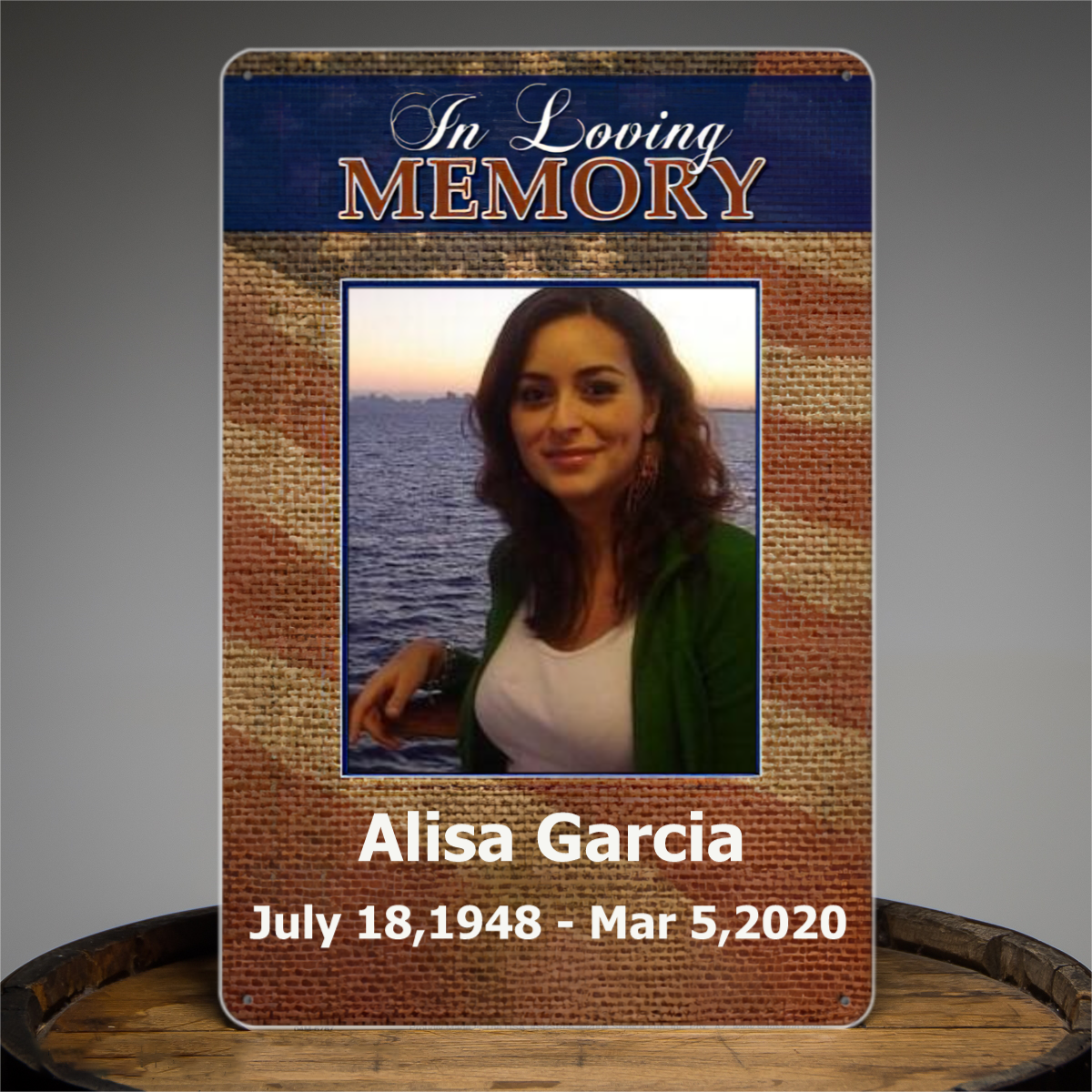 Red White and Blue In Loving Memory Personalized Photo Memorial Tin Signs