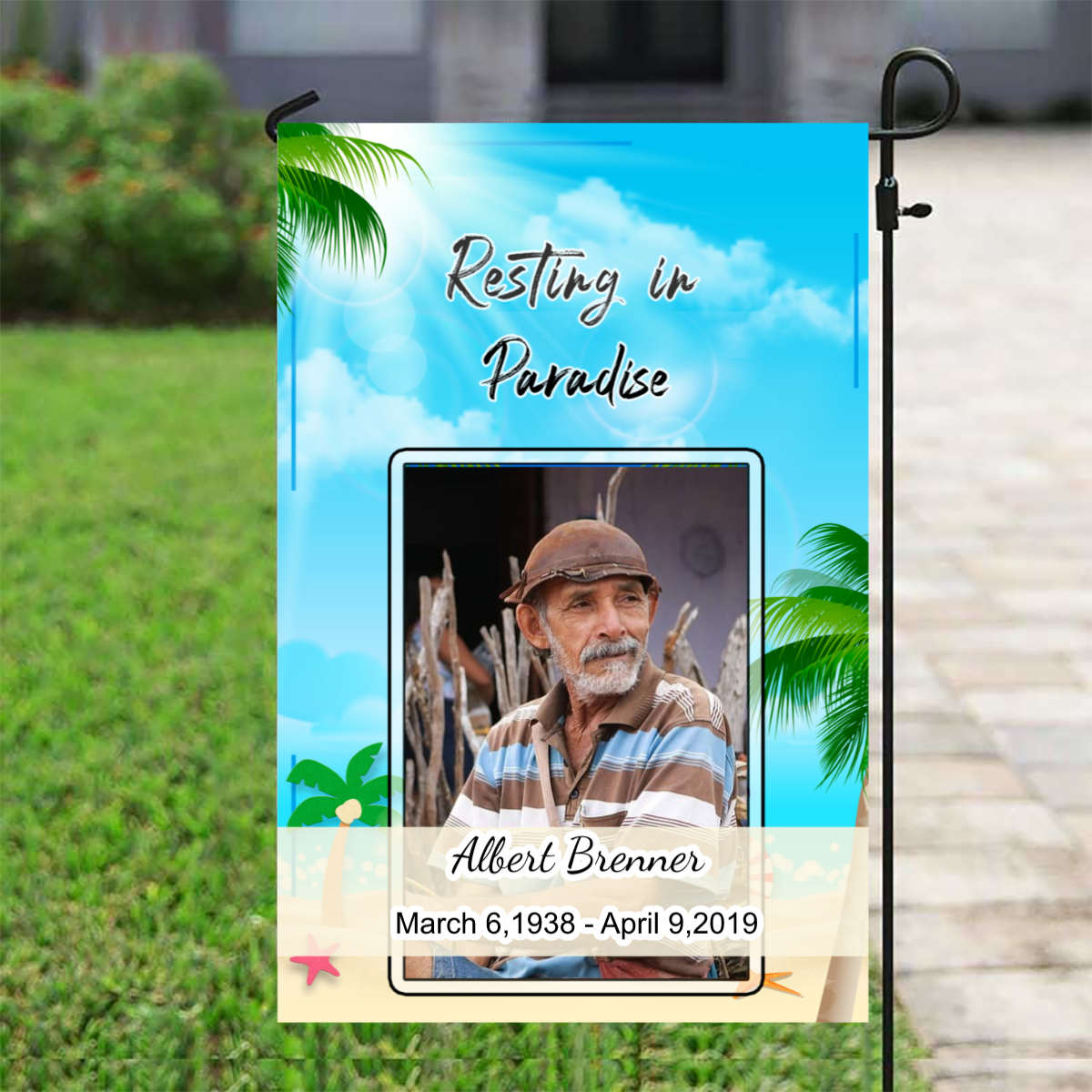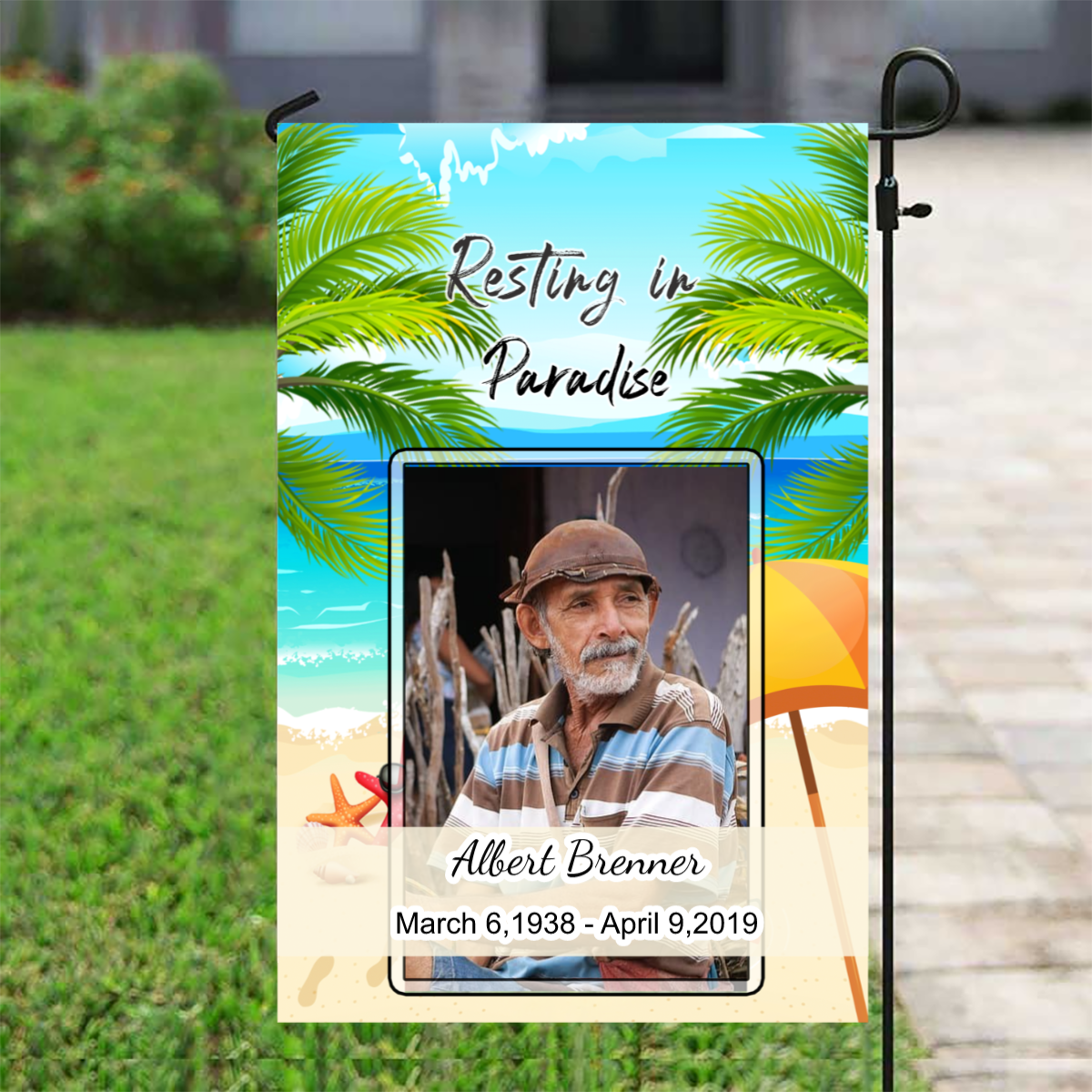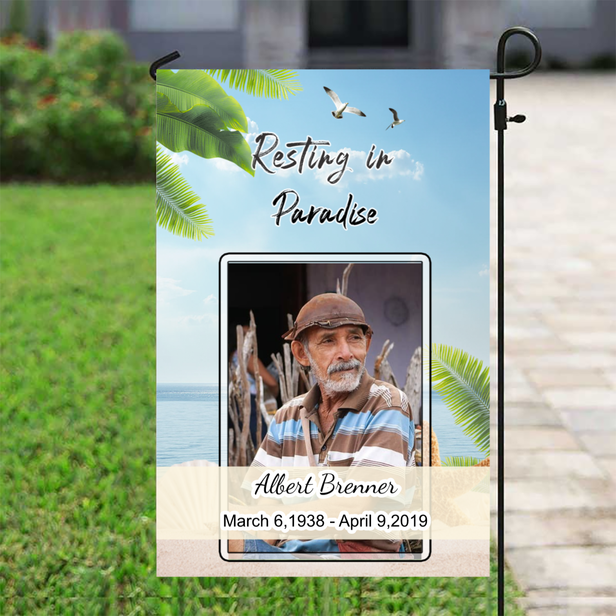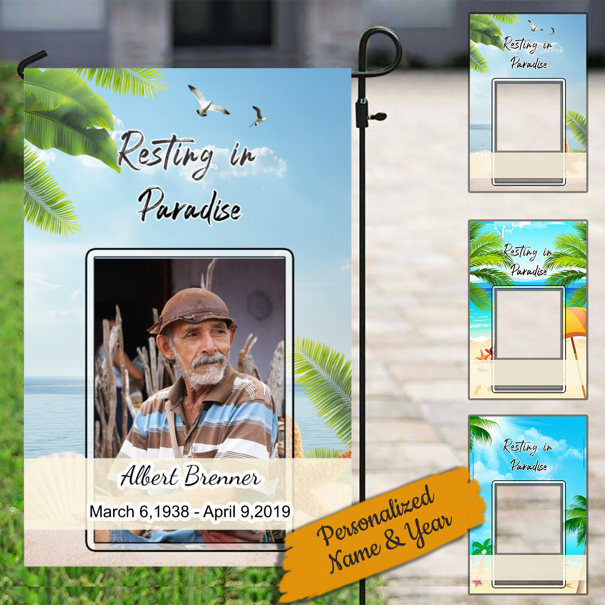 Resting in Paradise Garden Flag - Memorial Flag - Remembrance Garden Flag - Custom Photo Flag - Personalized Yard Sign