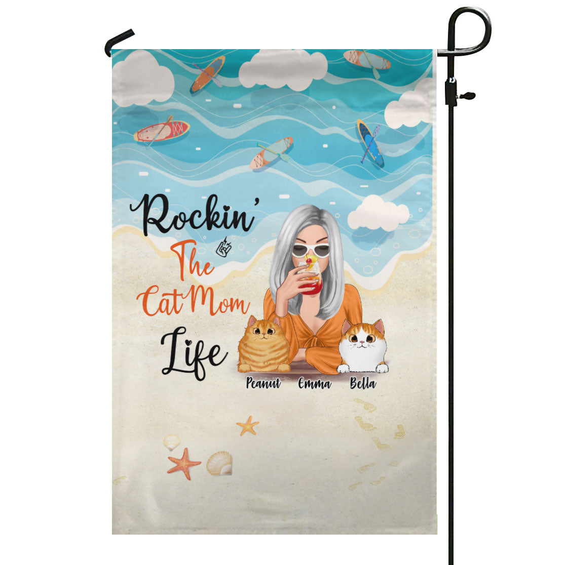 Rockin‘ Cat Mom Life Cocktail Girl Personalized Names & Designs Garden Flag