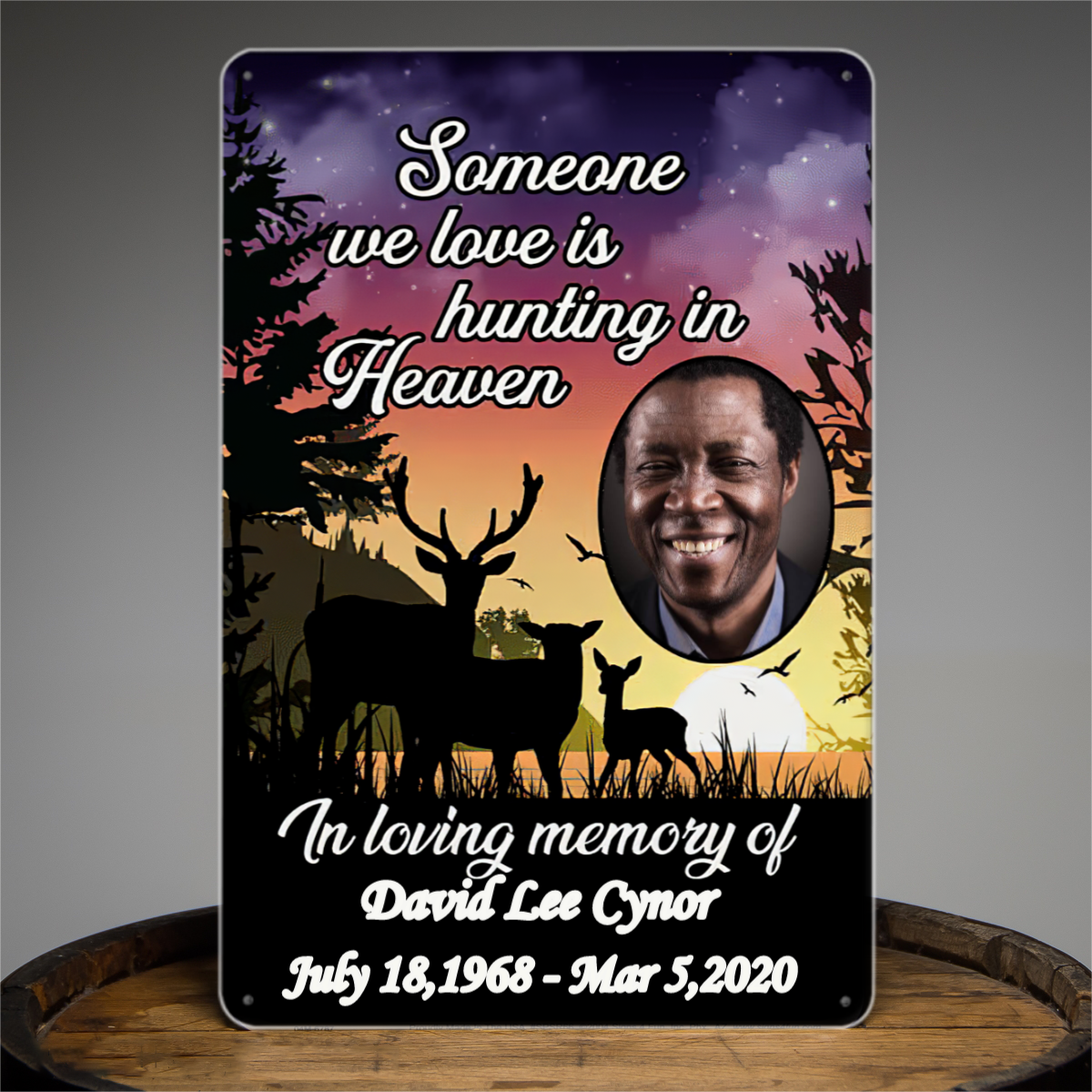 Someone We Love is Hunting in Heaven Personalized In Loving Memory Memorial Tin Signs