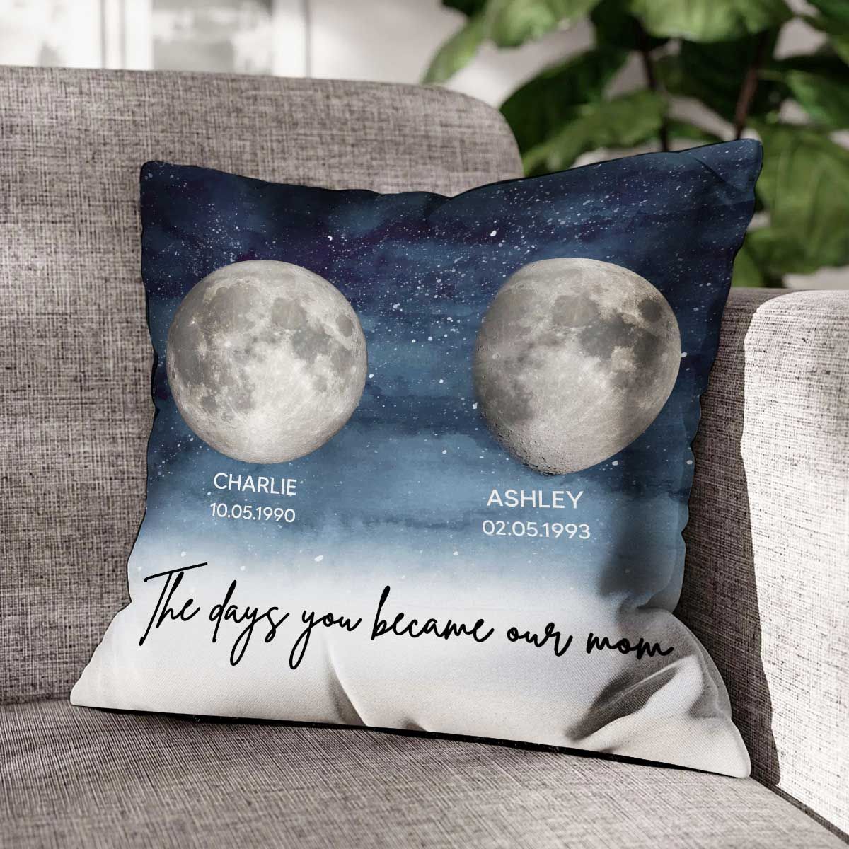 Starry Night Custom Birthday Moon Phase The Day You Became Mom Personalized Pillow, Mother's Day Gift