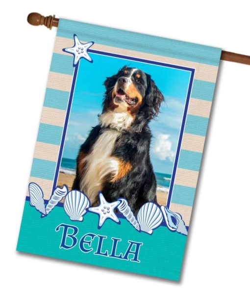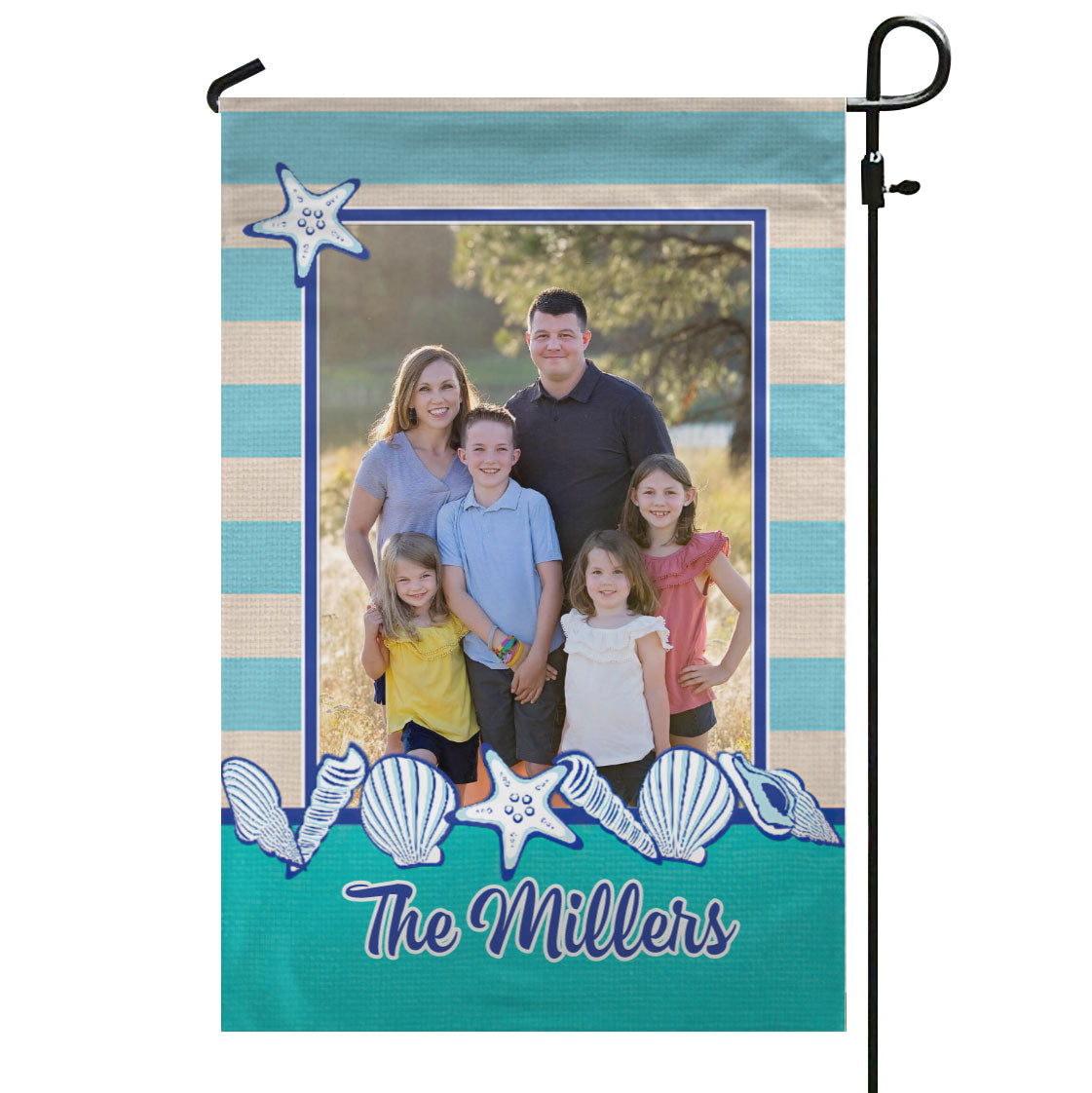 Stripes & Seashells Personalized Photo & Name – Garden Flag & House Flag