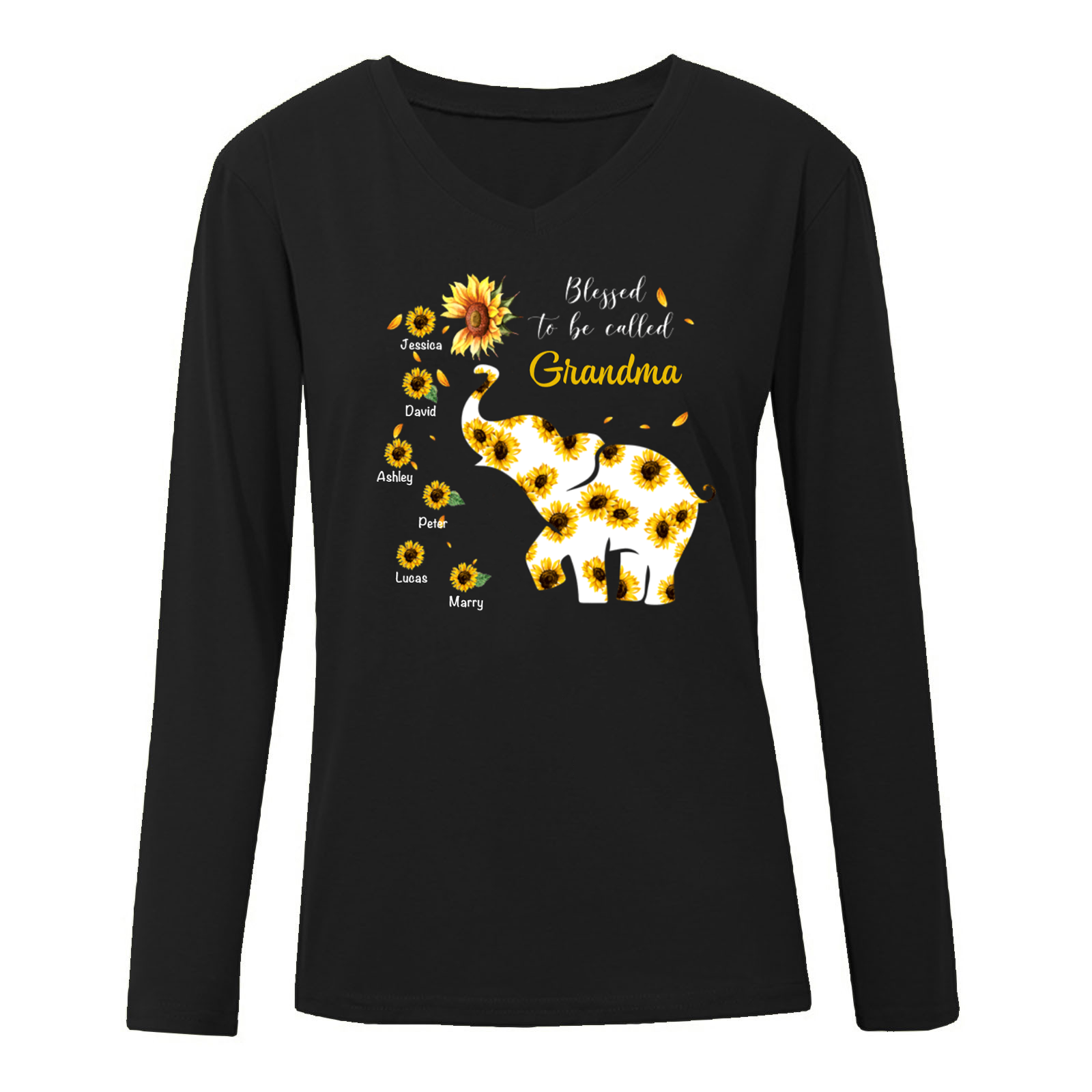 Sunflower Elephant Mom Grandma Personalized Long Sleeve Shirt