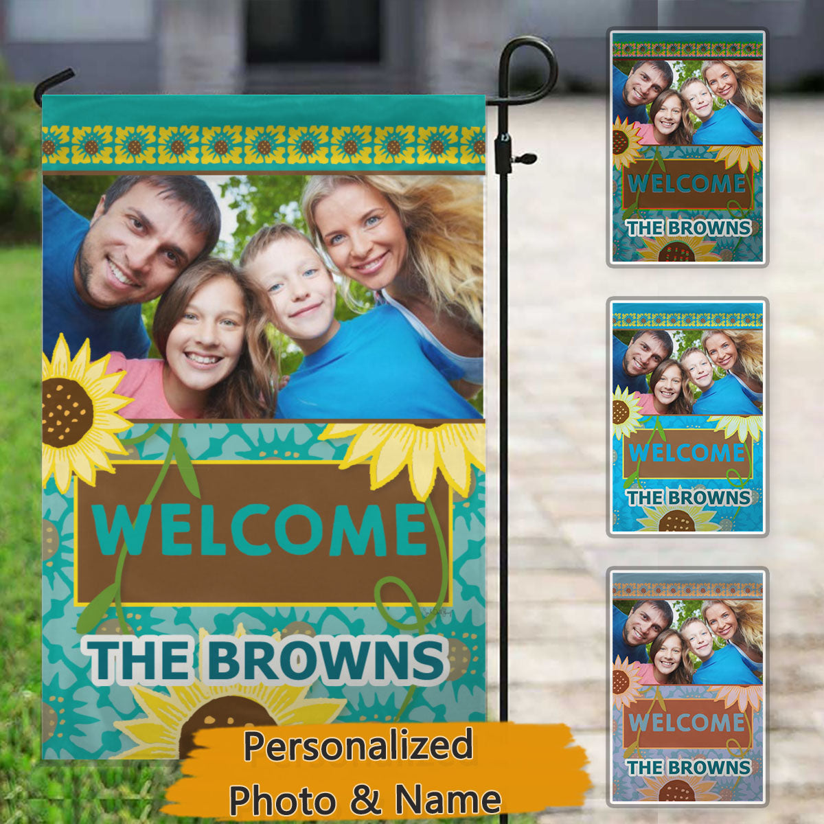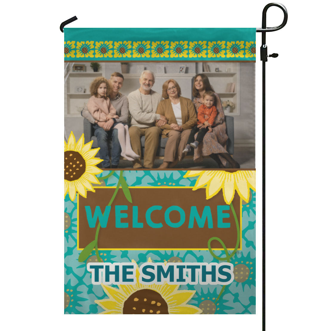 Sunflowers Welcome – Personalized Photo & Family Name Garden & House Flag