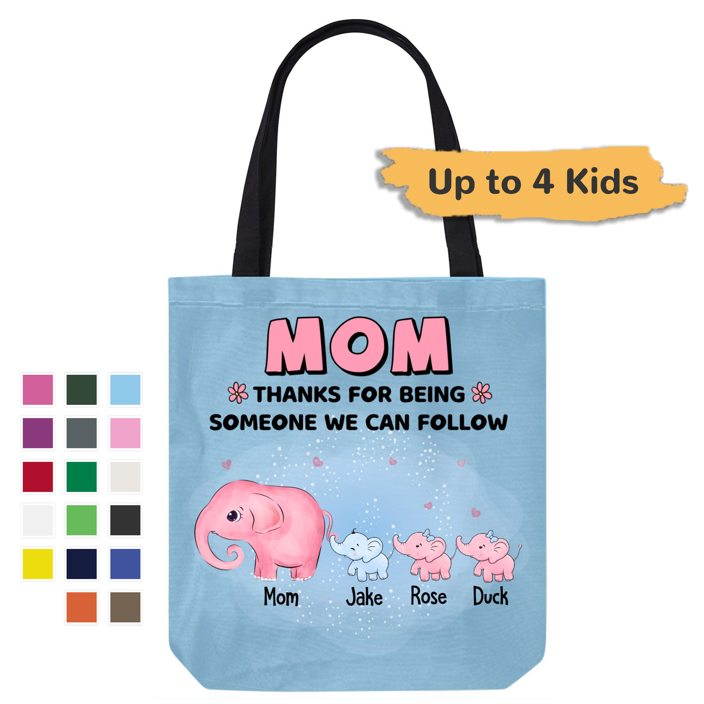 Thanks For Being Someone I Can Follow Elephant Mother's Day Personalized Canvas Bag
