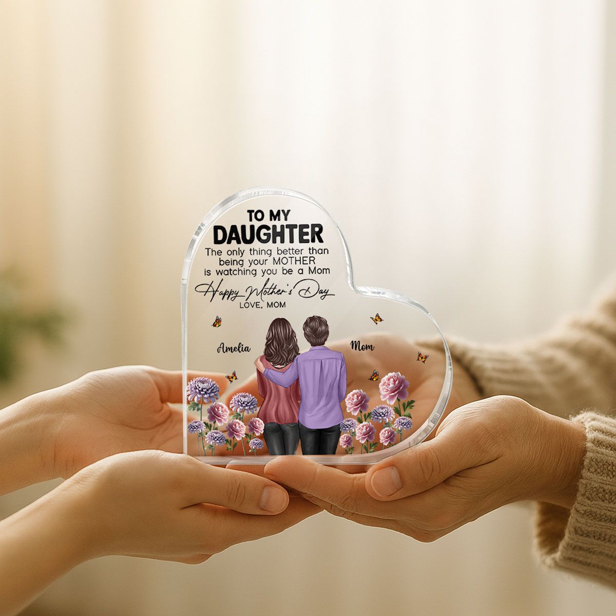 To My Daughter From Mom Happy Mother's Day Birth Flower Personalized Heart Acrylic Block Plaque