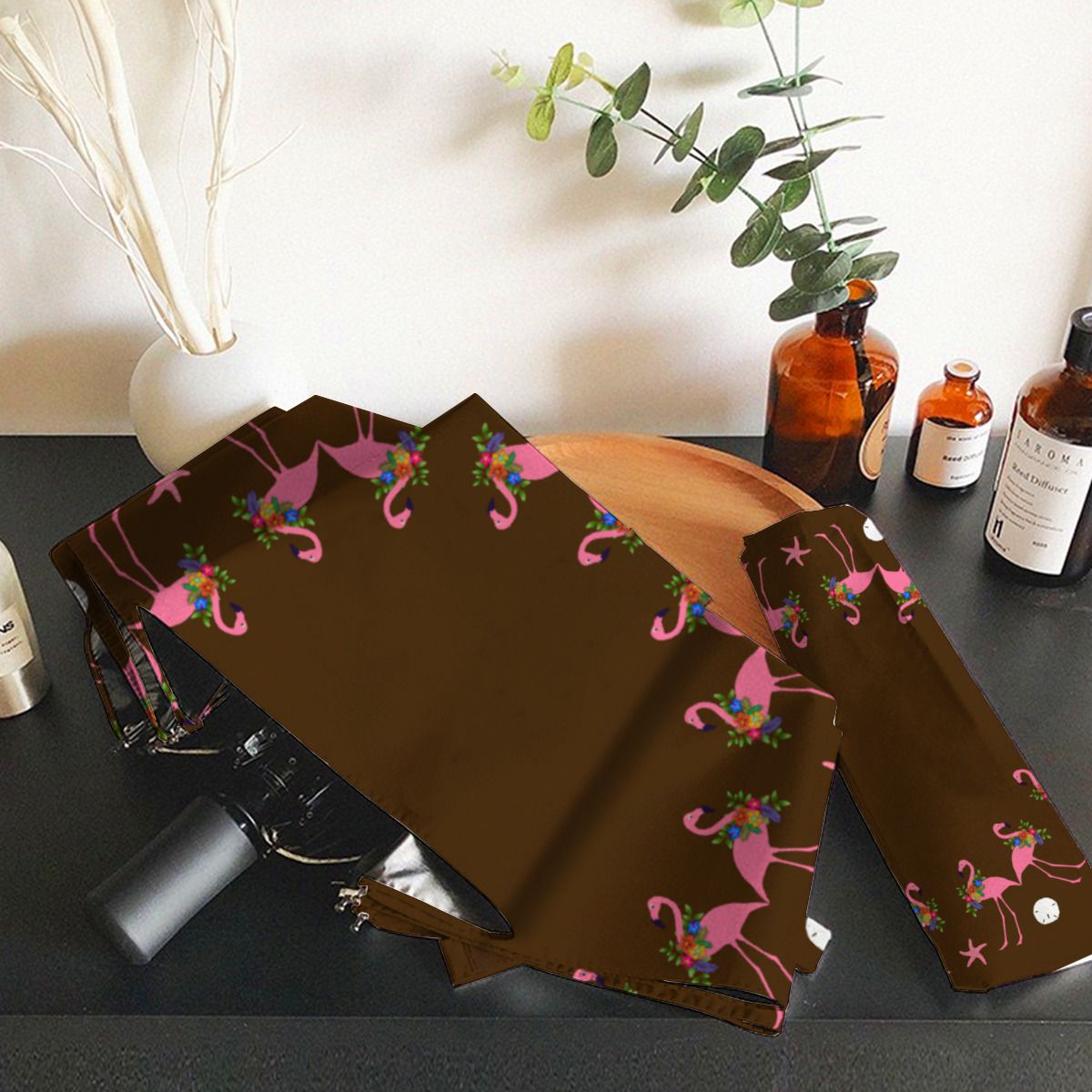Tropical Flamingos All Around Brown Christmas Brushed Polyester Umbrella No.6P7QCV
