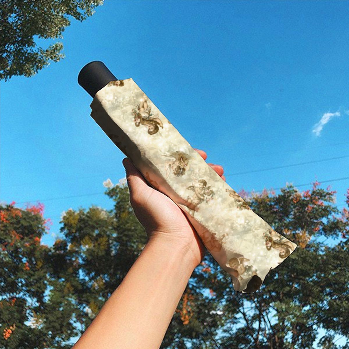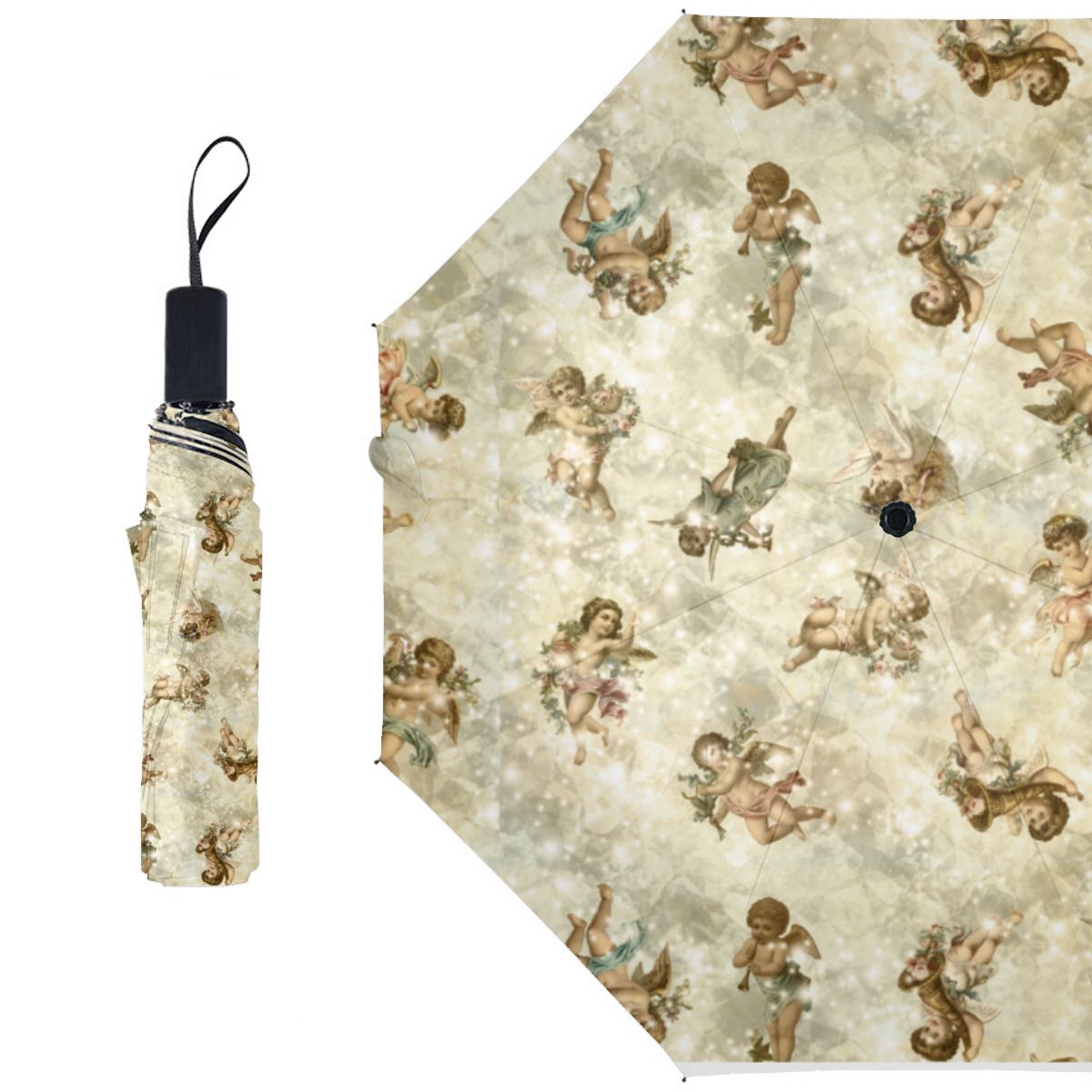 Vintage Angels Glittering Gold Id136 Brushed Polyester Umbrella No.FAV2GD