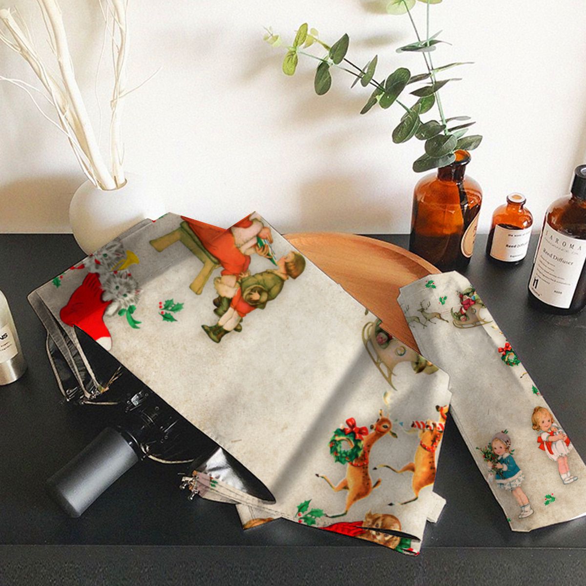 Vintage Christmas Brushed Polyester Umbrella No.7ZT7FC