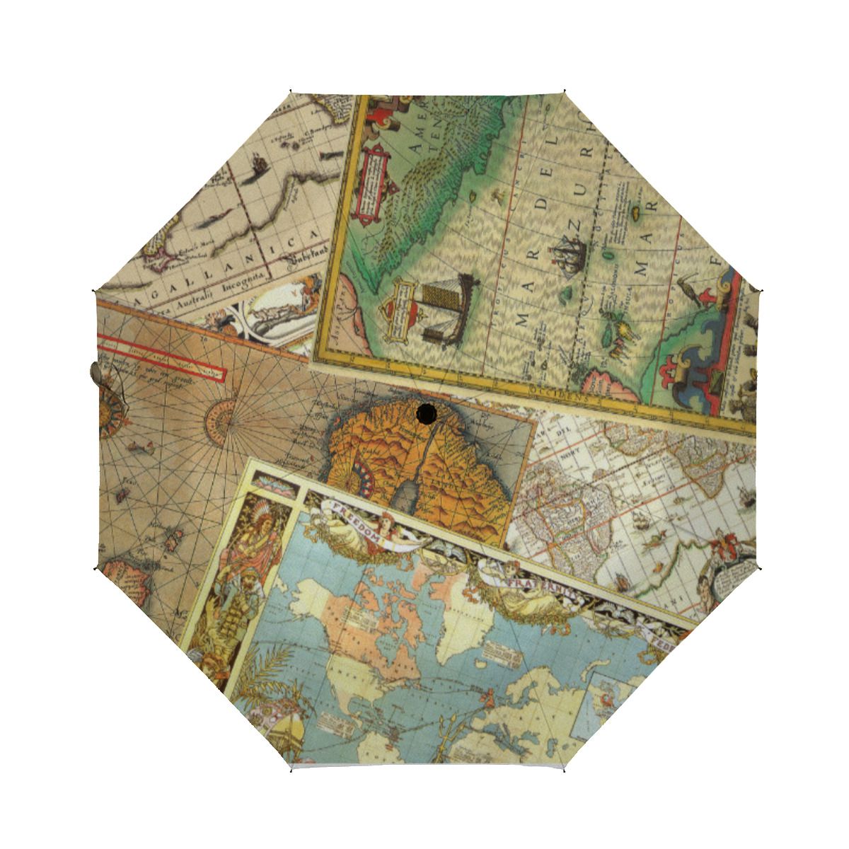Vintage Map Print Brushed Polyester Umbrella No.Y2CGPD