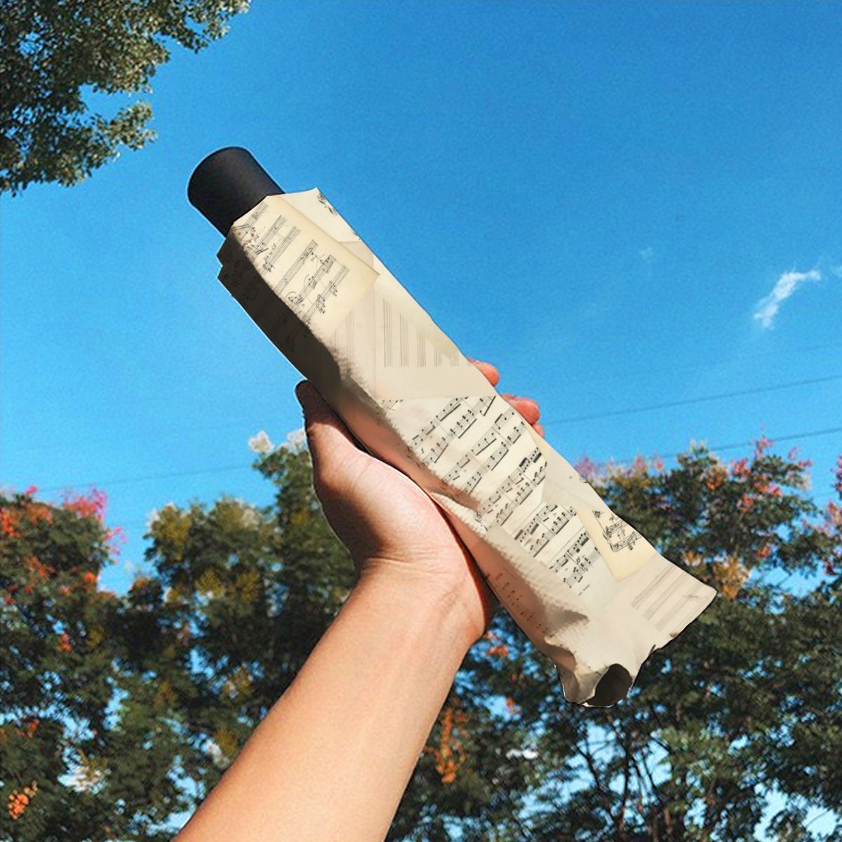 Vintage Music Composition Collage Christmas Brushed Polyester Umbrella No.UQWD97