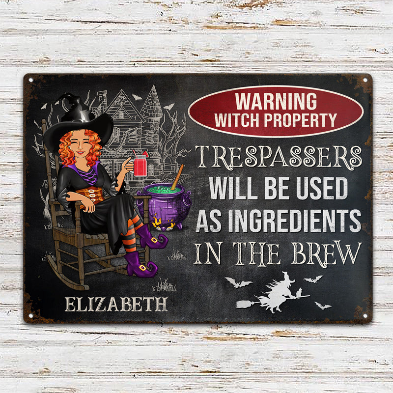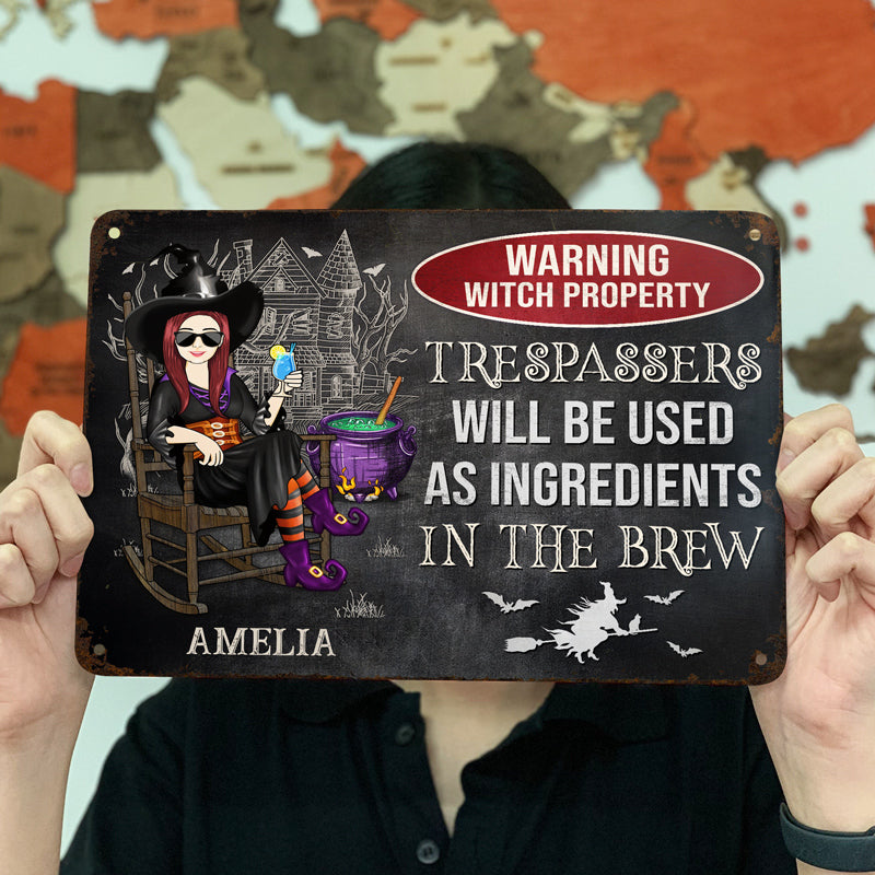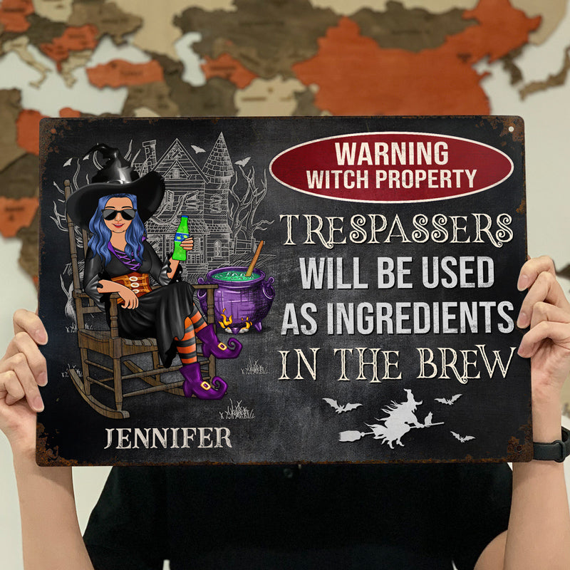Warning Witch Property Trespassers Will Be Used As Ingredients In The Brew - Gift For Witches - Personalized Custom Classic Metal Signs
