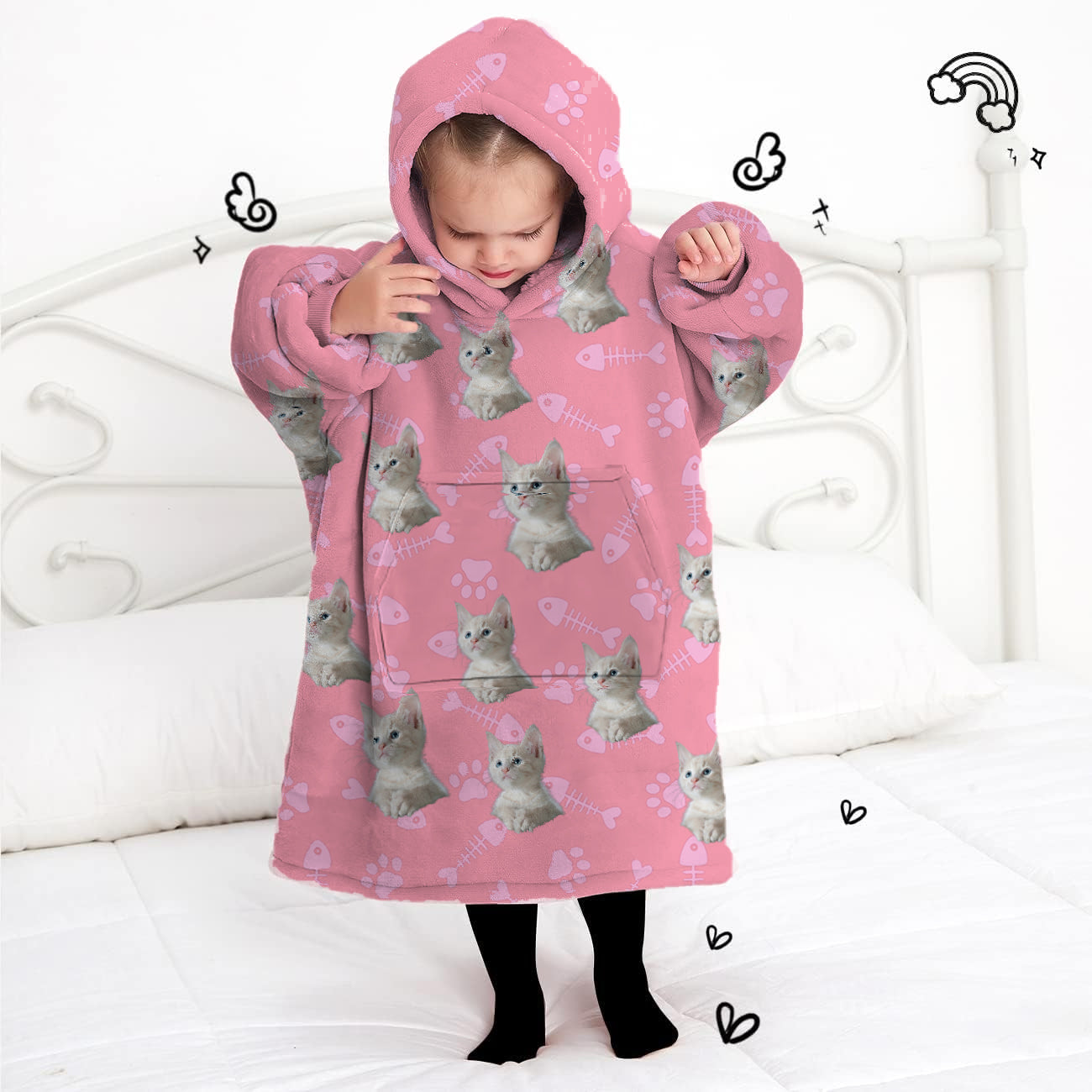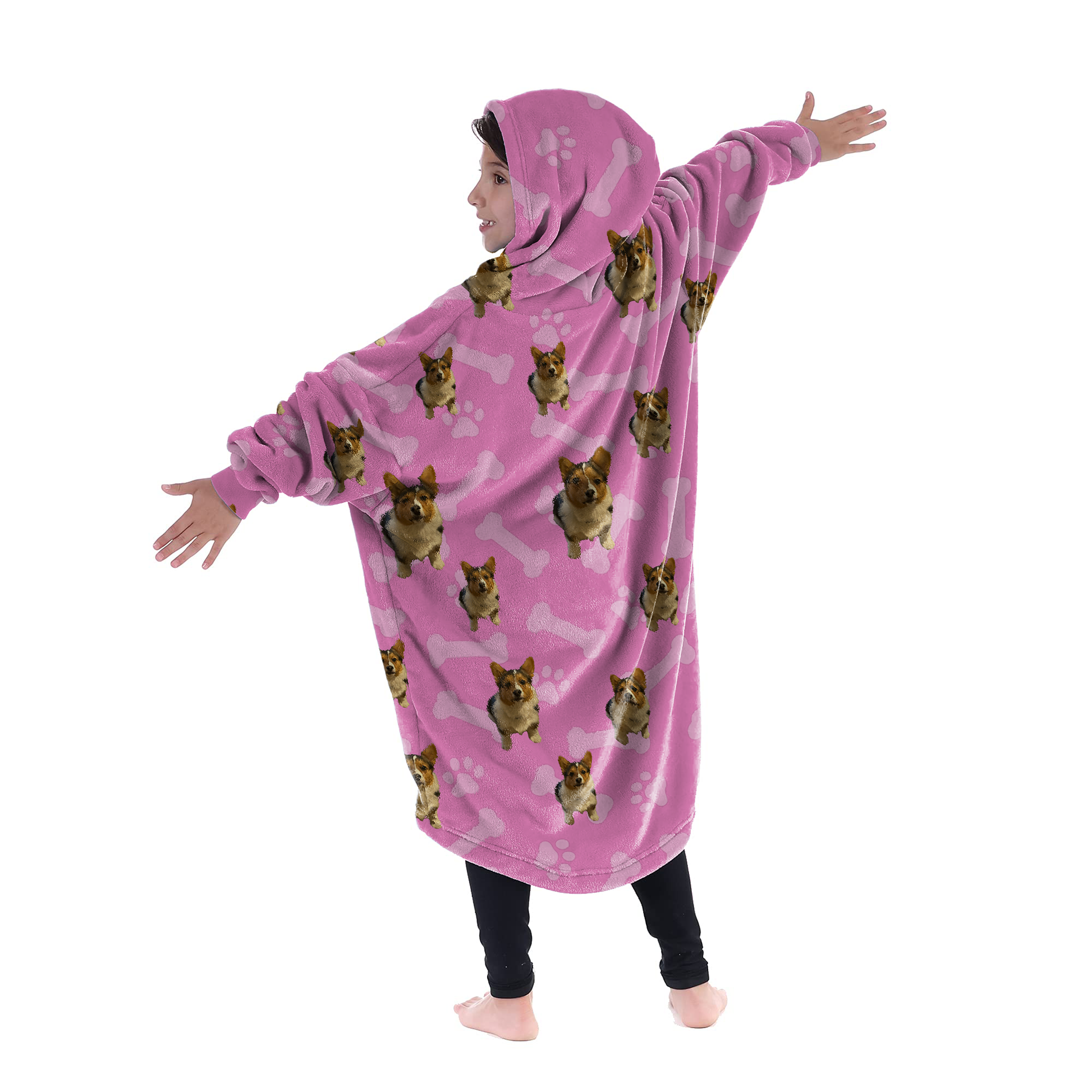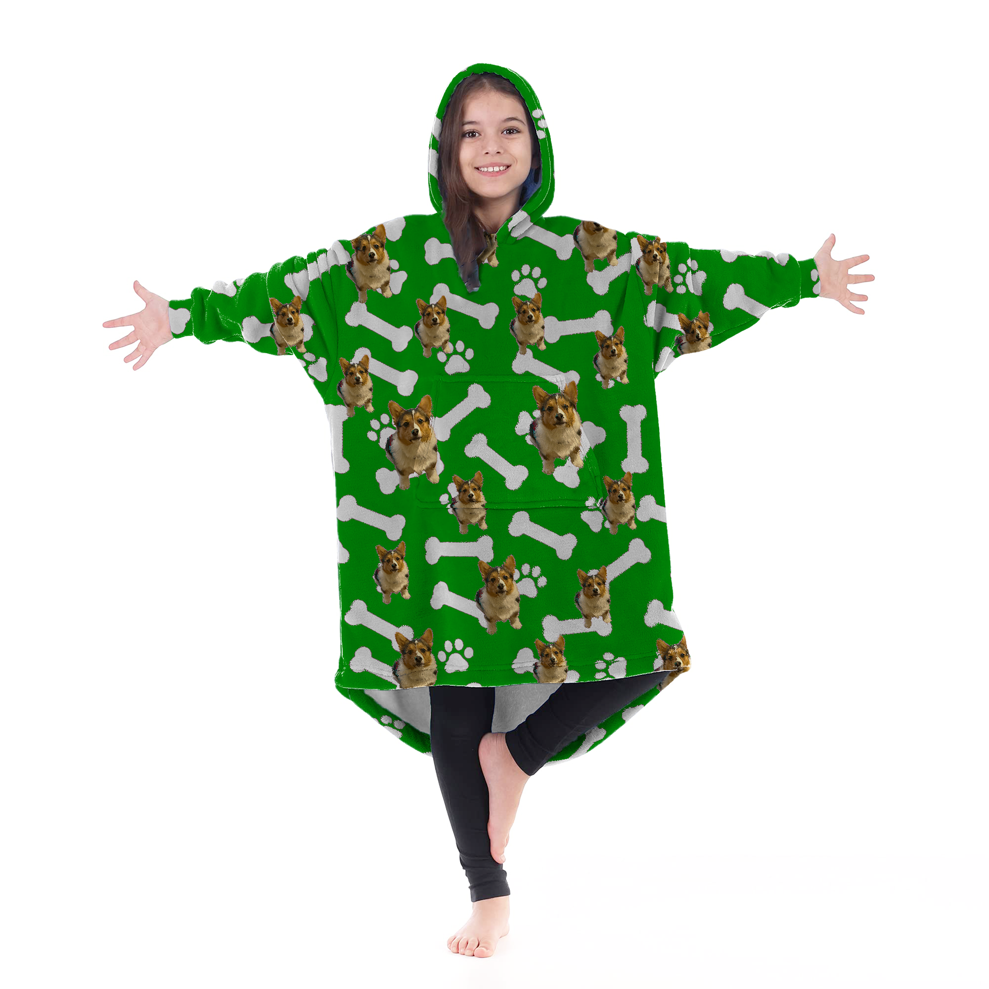 Personalized Blanket Hoodie With Dog Cat Photo Oversized Sweatshirt Blanket Warm Cozy Star Hooded Blanket