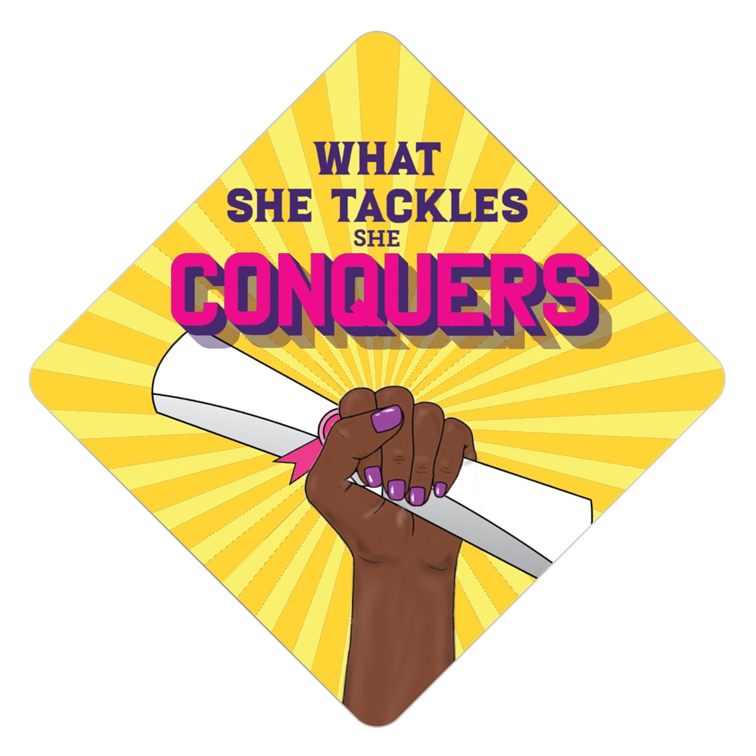 What She Tackles - Black Queen - Grad Cap Tassel Topper