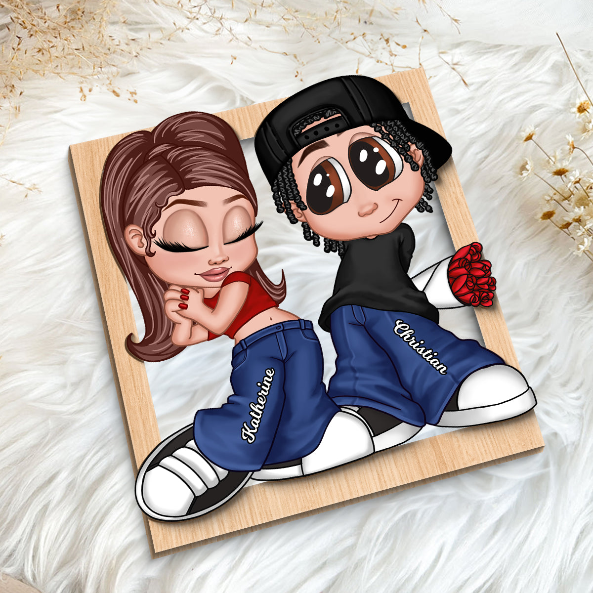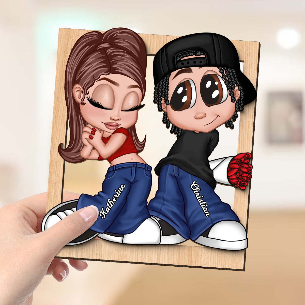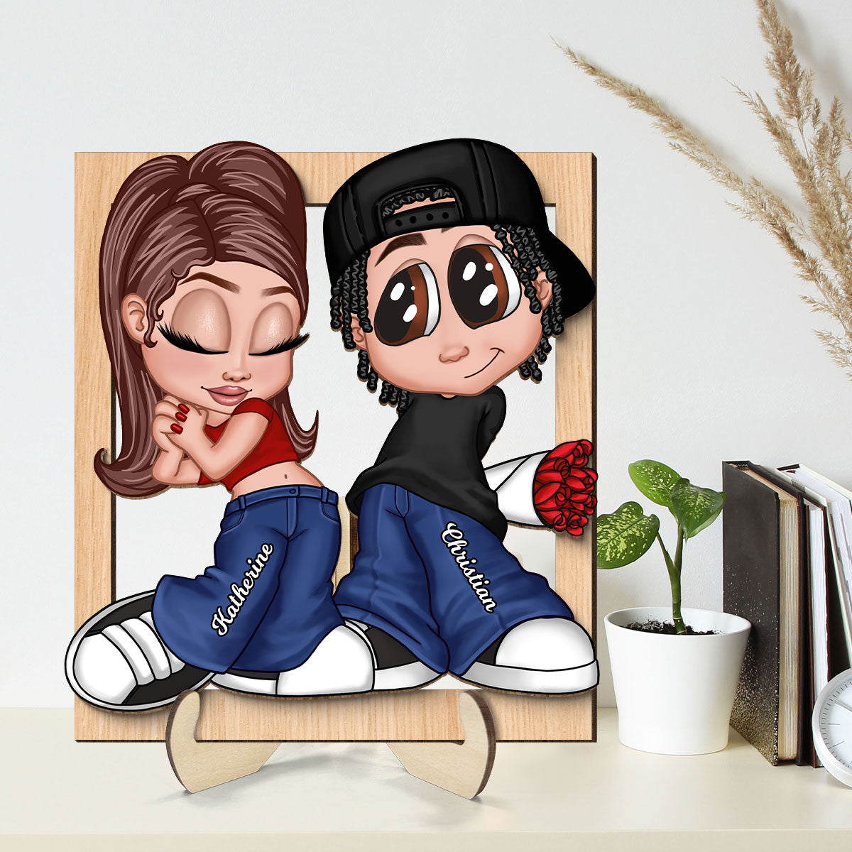 Y2K Couple Frame Personalized 2-layer Wooden Plaque, Gift For Him, Gift For Her