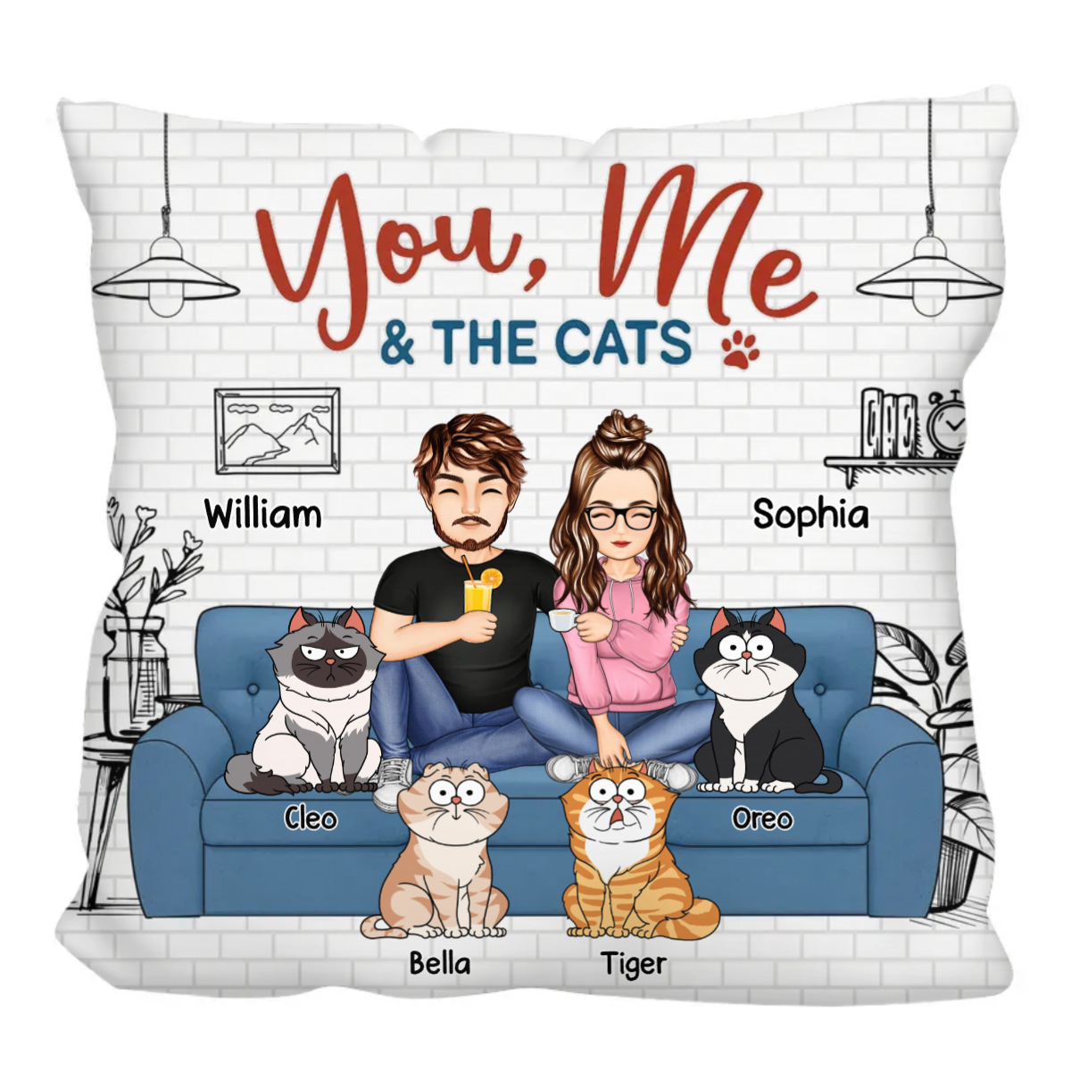 You And Me And The Cats - Gift For Cat Lovers - Personalized Pillow